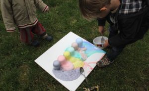 J’ai pas eu besoin de trop expliquer les consignes à Jérôme il a tout de suite compris qu’il fallait mettre le bicarbonate dans les pots. Et après place au « spectacle ». Jérôme a ensuite rebidouillé avec du vinaigre pour retrouver l’effet. Il a ensuite mélangé les mousses, les couleurs… Sous l’œil très attentif de Pierre 🙂 Une activité à faire et refaire!