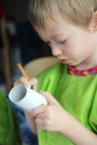 Les enfants se sont vraiment demandés ce qu’on allait faire avec des rouleaux de papier toilette! Finalement ils ont assez vite compris et cela leur a beaucoup plu!